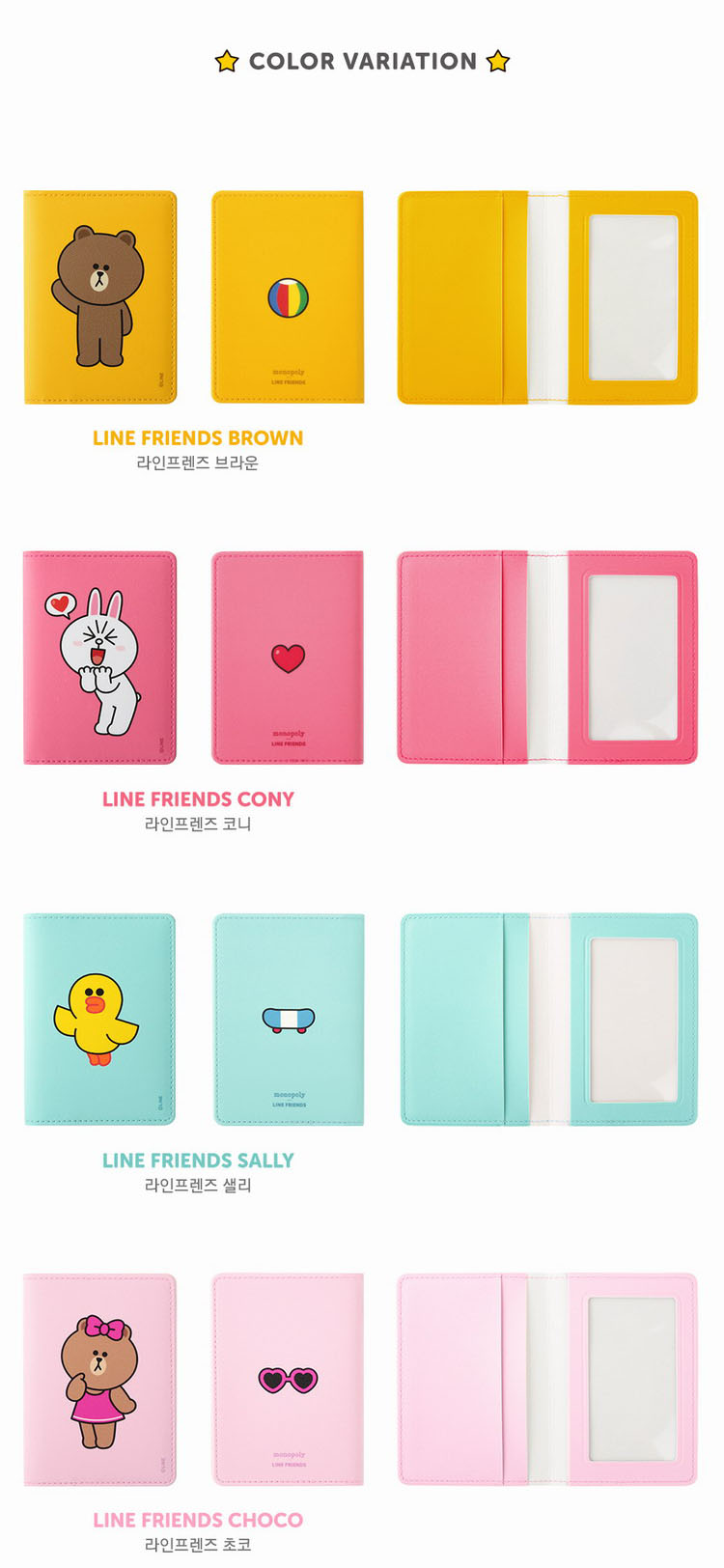 韓國訂購LINE FREINDS款式! 4款選擇! (BROWN熊大, CHOCO熊大妹妹 , CONY兔兔, SALLY莎莉) 可擺放卡片, 八達通, 亦可以擺放紙幣 ! 接疊式設計, 精美可愛, 小朋友至大人同樣喜愛之款式! - Korea cartoons LINE FREINDS style!