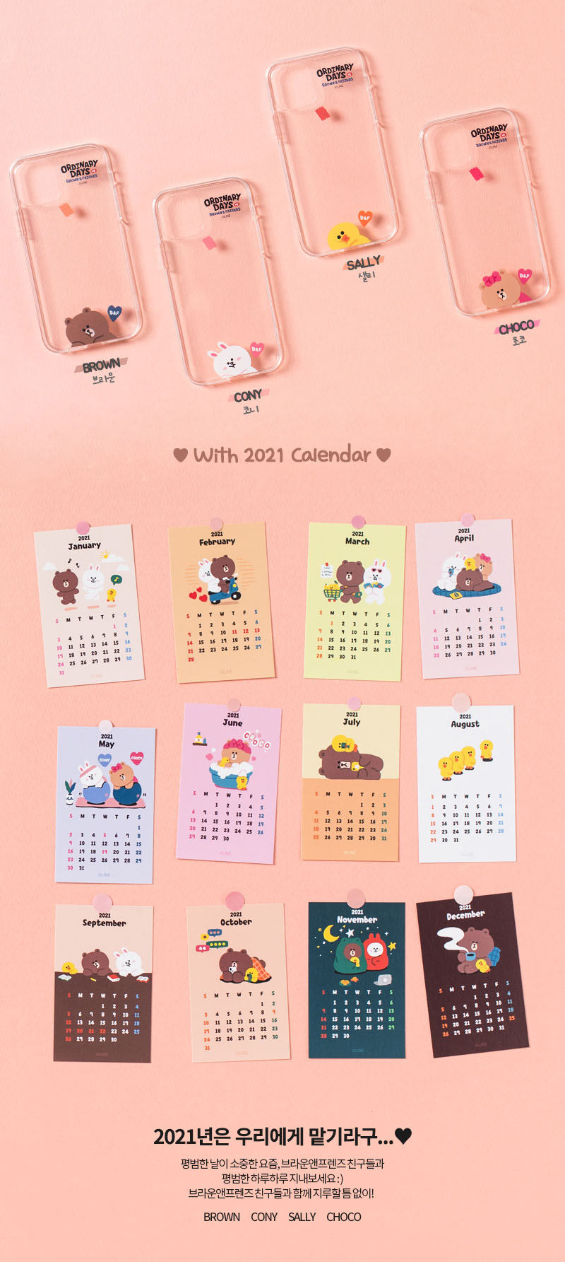 韓國訂購!LINE官方授權卡通人物2021 Calender Case (iPhone 12)